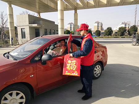 2月12日、13日,青年志愿者們分別來到機動車檢測中心和客運北站,穿上志愿者衣服,戴上小紅帽,熱情地向廣大車主和旅客發放春聯、福字門貼、窗花、紅包袋等新春禮包,并在新春佳節來臨之際為他們送上了祝福和溫暖。同時,志愿者們還向旅客介紹了公司的微信公眾號,手把手教旅客具體操作流程,并告知旅客可以通過微信公眾號查詢嘉興始發的客運班次時間,還能直接購票,方便快捷。