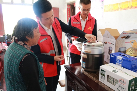 10月17日,嘉興南黨支部黨員志愿者一行人前往結對幫扶的徐大姐家,送上精心挑選的電飯煲、食用油和牛奶等慰問品,點亮他們的“微心愿”。嘉興南黨支部的志愿者們用實際行動將困難居民的小小心愿實現,將黨的關懷送到了困難居民的心坎上。