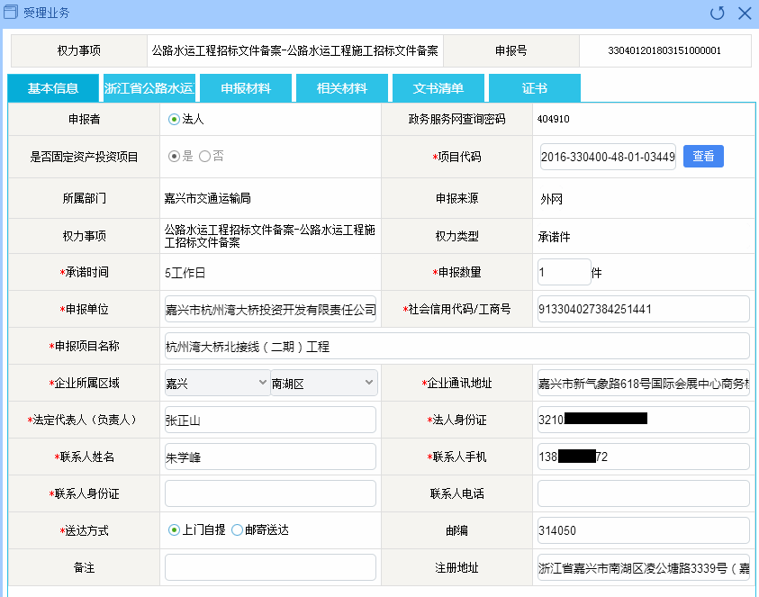 灣北二期工程交安施工招標文件備案服務信息