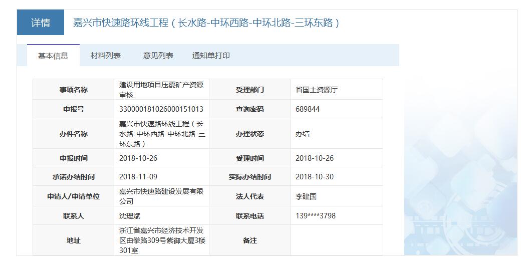 嘉興市市區快速路環線工程壓覆礦產資源審核服務信息