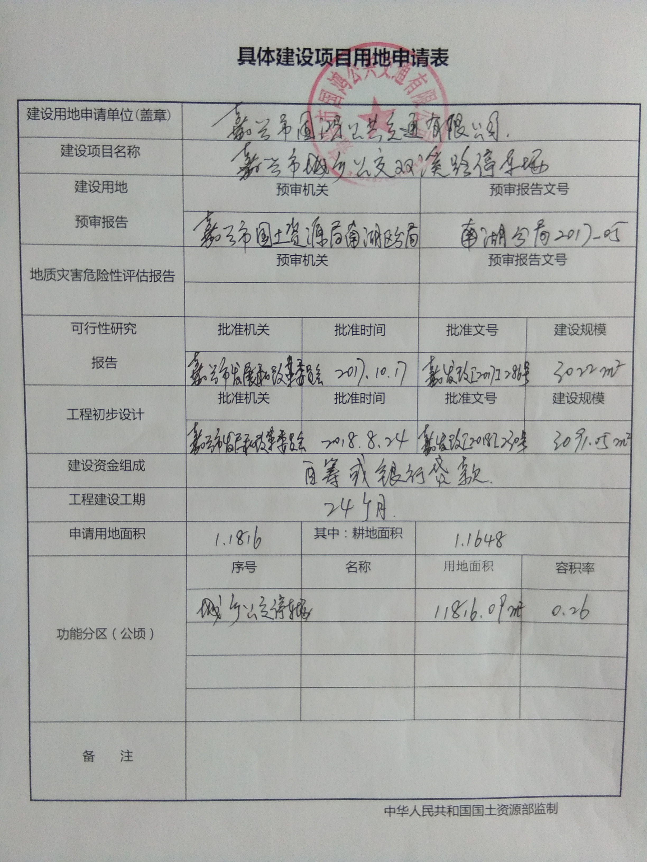 嘉興市城鄉公交雙溪路停車場項目建設用地申請